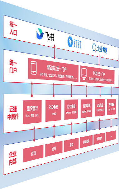 对协作平台提供支持服务,,,支持企业应用与协作平台对接,,,,包含组织同步、、消息集成、、待办集成等。。。。支持目前主流的协作平台:钉钉、、、、企微和飞书。。。